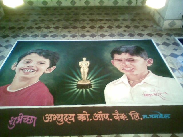 Title Contemporary Dry Powder Color 'Rangoli Art' On the floor - 15 hours of efforts -