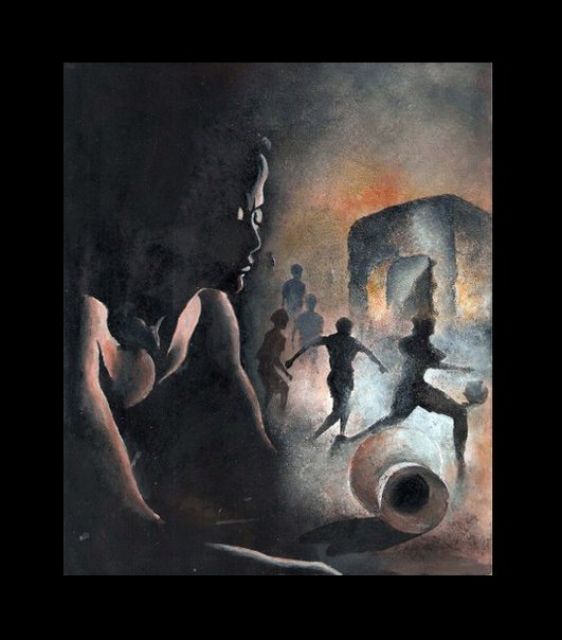 Title this painting is on the Ethnic Violence of KARBI and DIMASA ( 2 major tribes of northeast India)..The massive violence took place in 2003.